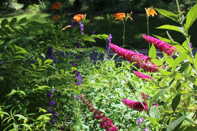 I brought Croscima over from the boathouse garden, but no blooms this year. Mindy is growing them in her garden, so I clipped a piece to put in a vase.